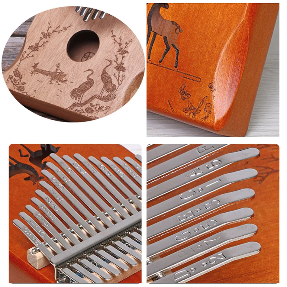 Feature 3: 17 Keys Bull Kalimba Thumb Piano Mahogany Body Musical Instrument