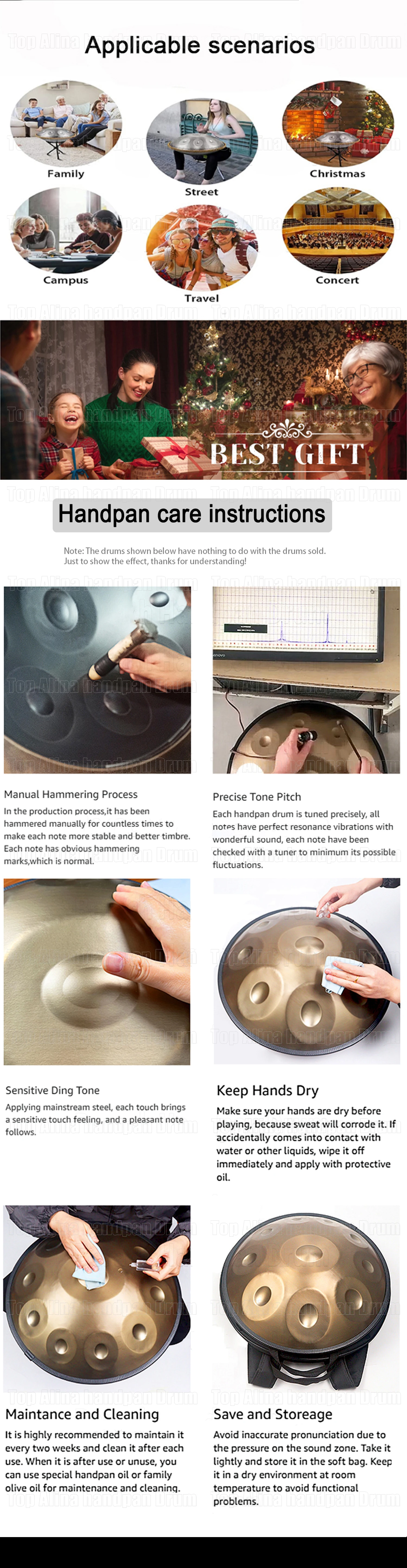 Applications: HANDPAN has a clear, ethereal, unique sound. Perfect for music therapy, yoga practice, personal meditation, band performances, play with family and friends, and more.