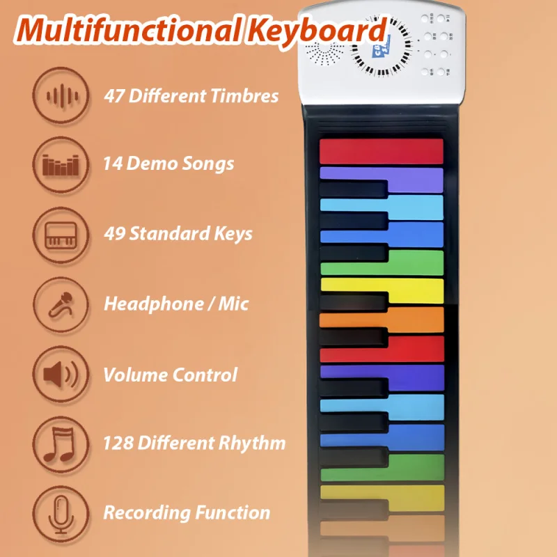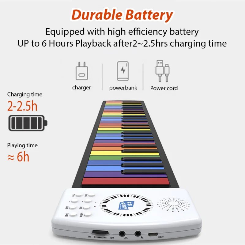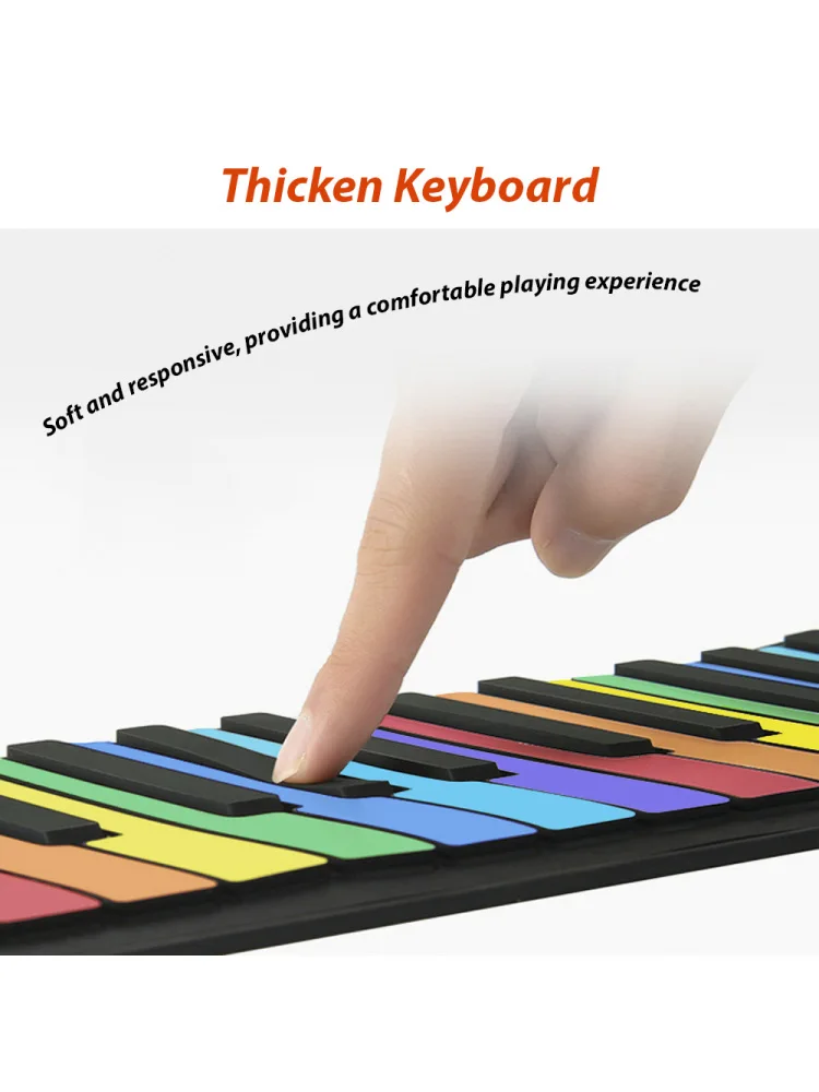 🎹 EXPAND YOUR MUSICAL HORIZONS: With 128 different rhythm accompaniments, this Roll Up Keyboard allows you to explore various musical genres and styles. Whether you're into classical, jazz, rock, or pop, this keyboard has something for everyone. Expand your musical horizons and unleash your creativity with the colorful Roll Up Keyboard.