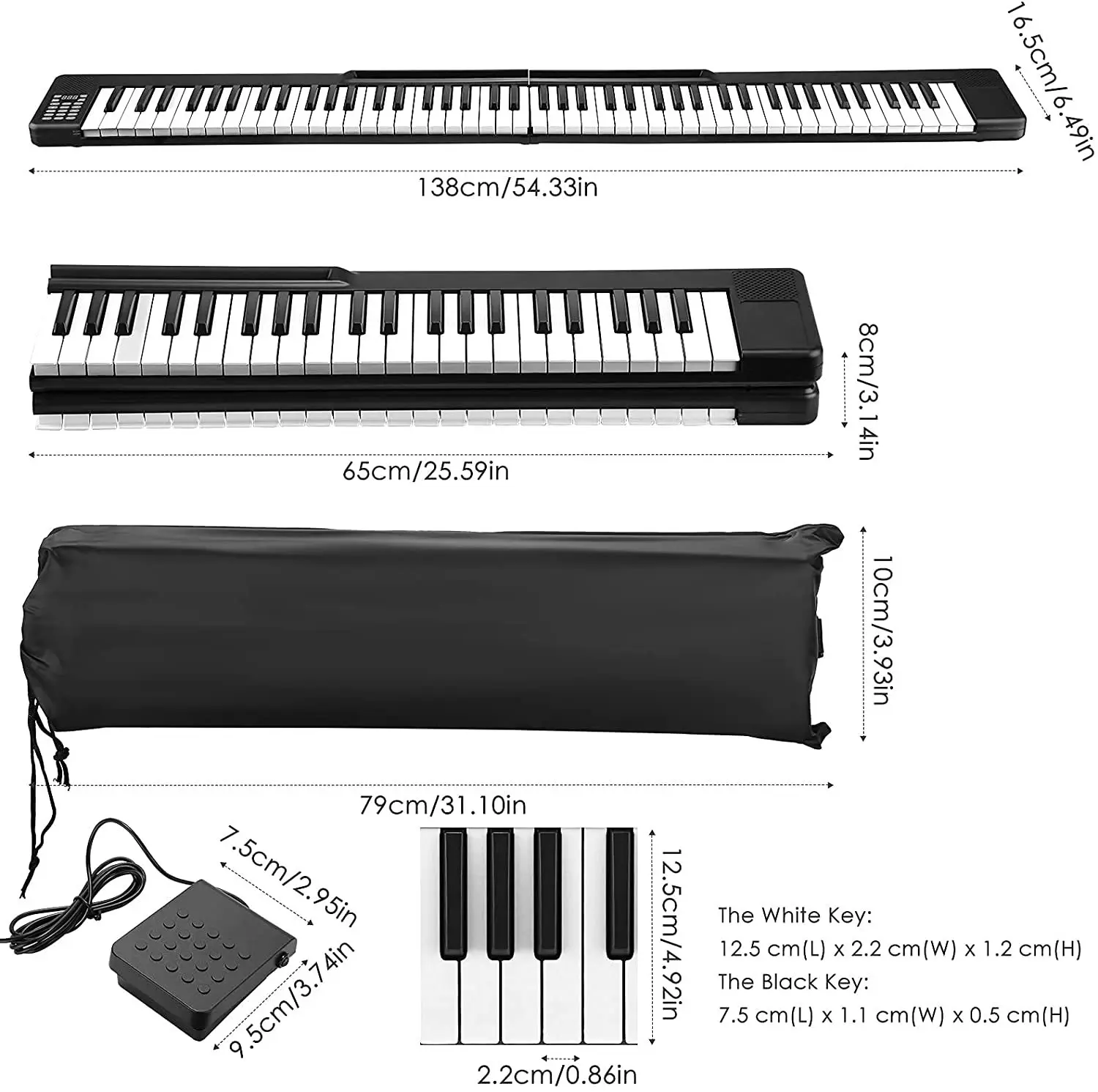 ** Size: ** 1. White key width 22mm; The width of the black key is 11.4mm 2. Expansion size: L 138x W 16.5x H 4cm 3. Folding size: length 69x width 16.5x height 8cm