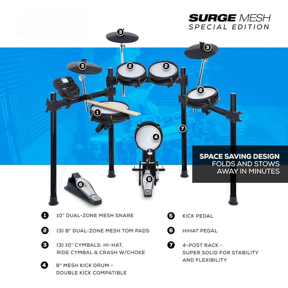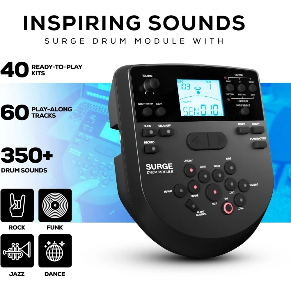 In-Demand Sounds – The Surge Special Edition electronic drum module includes 385 drum sounds and 40 kits, 60 play-along music tracks and a metronome to help build timing and accuracy