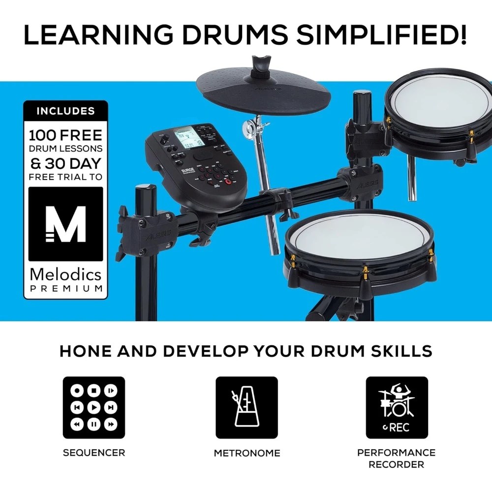 All-In-One Electronic Drum Set – Dive in a natural playing experience with quiet drumheads. It has everything you need to learn drums and get good fast: mesh drum pads, inspiring sounds, fun and engaging lessons, and a rock-solid kit