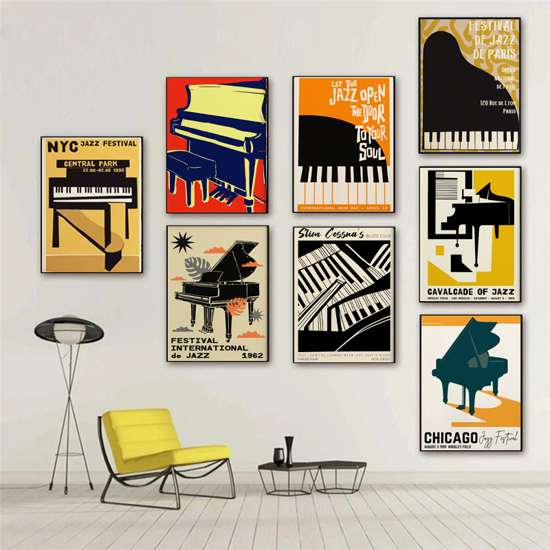 Modern Jazz Festival Music Festival Poster Simple Style Colorful Piano Pictures Canvas Printing Posters Wall Art Decor for Bar