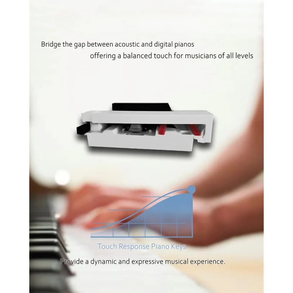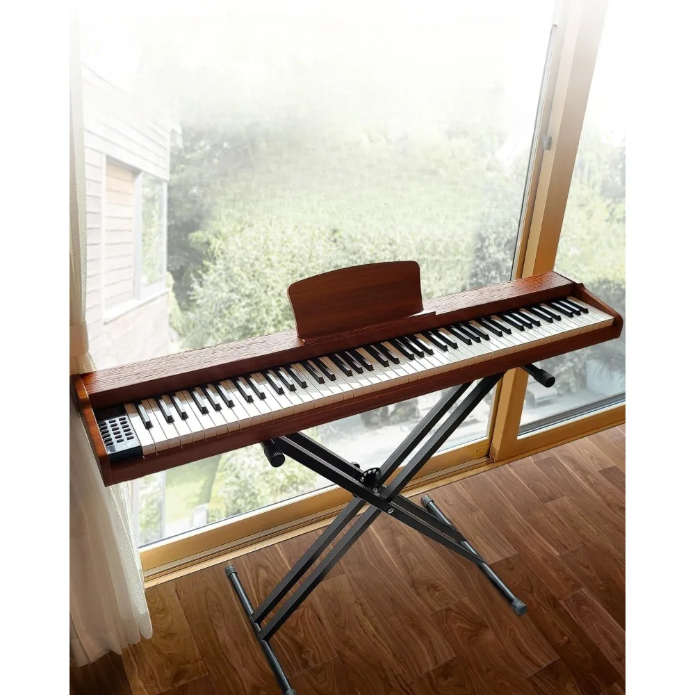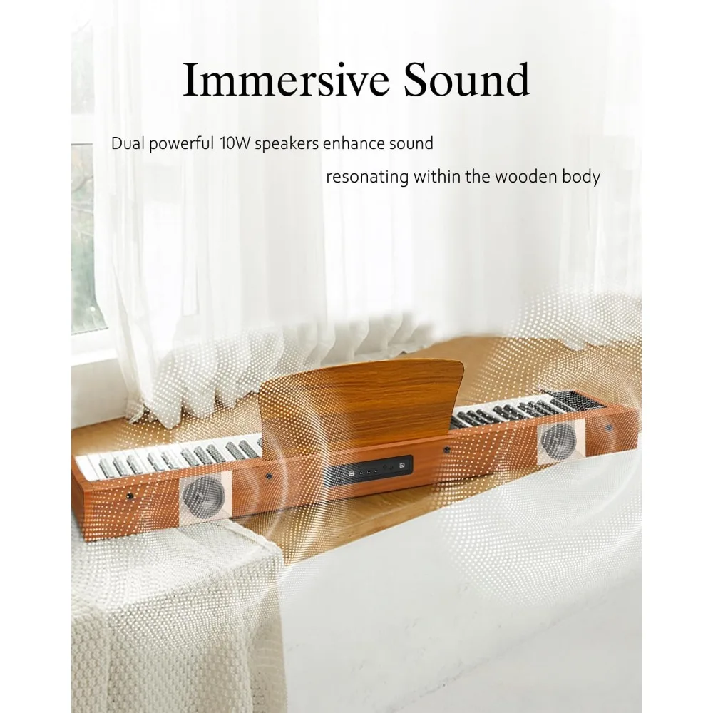 [Elegant Appearance] Immerse yourself in the world of music with our exquisite wooden-structure digital piano. Its elegant body exudes sophistication that seamlessly integrates into your home decor. The included matching sheet music stand offers convenient support for your sheet music, phone, or iPad, enhancing your convenience during practice sessions. This digital piano not only enhances your playing journey but also serves as a distinctive addition to your interior design.