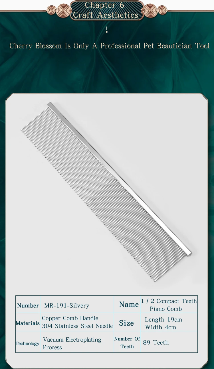 Sakura Pet Grooming Piano Comb Poodle Pull Hair Open Knot Comb Competition Competitive Dog Pick Hair Style Inline Comb